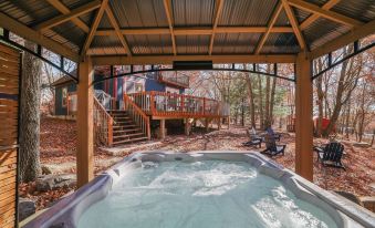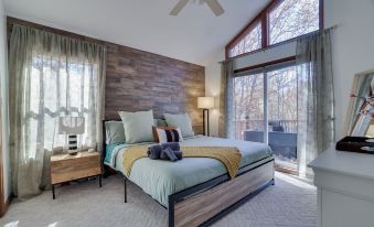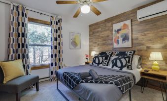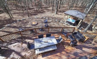 Whether you’re here for outdoor thrills or simply to unwind, this charming cabin provides the ideal home base. Step inside to find a beautifully designed open-concept living area, where stylish elegance meets rustic charm. The vaulted ceilings and natural light create a warm and welcoming atmosphere, perfect for relaxing after a day of exploring. The living room, with its mid-century modern touches, features cozy sofas, a crackling fireplace, and a smart TV for your entertainment. The fully equipped kitchen is a chef's delight, offering modern appliances and plenty of counter space for preparing your favorite meals. Enjoy your culinary creations at the indoor dining table, or step outside to the spacious deck for al fresco dining. The deck, complete with a grill and ample seating, is perfect for enjoying the fresh mountain air. Each of the three bedrooms is designed with your comfort in mind. The master bedroom features a king-size bed, smart TV, and ensuite bathroom, while the other two bedrooms each offer a queen-size bed, premium mattresses, and smart TVs. A cozy loft area provides additional sleeping space with a day bed and twin futon, ideal for accommodating extra guests. The outdoor space at Alpine Lodge is where the magic truly happens. Relax in the hot tub under the stars, gather around the fire pit for s'mores and stories, while soaking in the natural beauty of the surroundings. The lush yard offers a peaceful retreat where you can reconnect with nature and each other. Blue Eden is more than just a cabin, it’s your personal sanctuary in the Poconos. Whether you’re looking to fill your days with adventure or simply want to relax and rejuvenate, this retreat has everything you need to create lasting memories.