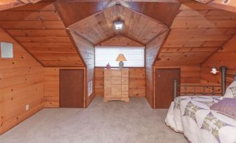 Sleeping Arrangements: The cabin has two bedrooms downstairs and a bedroom and loft upstairs. Downstairs, there are two full bathrooms. Bedroom 1 has a queen bed and spacious sitting area, Bedroom 2 has a full bed and private bath. Bedroom 3 has a queen bed and the loft has two twin size beds. Rooms have closets and chests for clothing and storage. (sleeps up to 8 people)