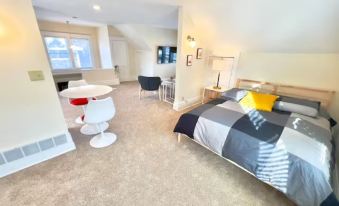 This was a well stocked and appointed home. The host was fantastic and very responsive. The inside of the home was very clean, the beds comfortable, the small touches throughout were perfect for the space. A couple of items to note:Our host was phenomenal. His customer service was spectacular and above and beyond what I had expected.The kitchen and bathrooms have several great products that are stocked throughout. The steam sauna is actually a steam shower in the master bedroom. It is of great quality, but not a sauna in a common space.There is not a hot tub, as listed on the description. There is, however, a 2-person jacuzzi tub in the main floor bathroom.There were coffee and great teas provided for our use. It was so appreciated! In addition, there was a delicious charcuterie board and bottle of wine greeting us upon arrival! It was delicious and thoroughly enjoyed by our party!There is so much to do within walking distance. We enjoyed the lake, as well as restaurants and shops in the area. Parking was a breeze. There were two areas in the front, as well as two slots in the back for parking, which is difficult to secure in the area.The only reason that I did not give a full rating on the cleanliness of the property is due to the outside. There are several weeds that need to be sprayed, or pulled, on the back patio and curb. There has been a lot of rain in the area lately, so I understand it might be something that crept up on the property owners.