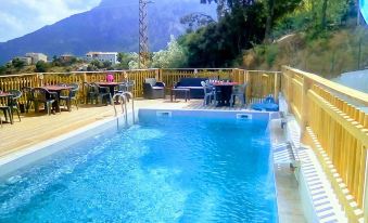 Rent studio with pool, spa (opening hours with the pizzeria), village center, near river, swimming allowed, canyoning, turtle village, climbing, beach Ile Rousse 30 minutes, pizzeria and pool in the area, near the river, access GR20, center of Haute Corse. (The advertised price is for 4 people