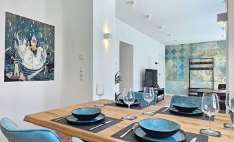 The apartments are stylish but also practically furnished. You will find a number of extras here that far exceed the standards of normal holiday apartments. The heart of the apartments are the cozy living rooms with adjoining dining area. Comfortable sofa beds offer enough space for large groups. You will also find smart TVs with sound systems and plenty of streaming options, as well as various consoles with a varied selection of games. Here you can relax in a beautiful ambience or argue over a multiplayer game. Real plants and a lot of attention to detail make the apartments a lot more homely than other accommodations.