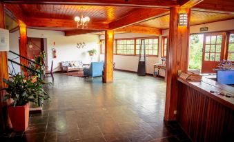 No quarto uma quantidade de pó que demonstrava que não haviam varrido, inclusive encontramos debaixo da cama uma meia que não era nossa. Não há armarios ou suporte para colocar a bagagem. A acustica do quarto é horrível. Hóspedes do quarto do lado conversando após as 11 horas da noite e incomodando nosso sono, na recepção ninguem para intervir (pois a politica do hotel é não ter funcionários neste horário) e ao enviar whats app as 23 h a msg automatica que recebo é: *não estamos disponiveis*. No banheiro o trilho do box com o piso estava remendado com massa(tipo Durepox) assim quando usavamos o chuveiro a água escorria por todo o banheiro. Recebemos o banheiro com vários fios de cabelo. Os pés cadeiras do salão do café da manhã todos enferrujados dão aspecto de velho e abandono. A noite e madrugada não há funcionário na recepção. Se não tinha funcionario para resolver um simples problema de barulho imagino numa situação de emergência. Um hotel pet friendly não pode ser conivente com tutores que saem e deixam seus pets no quarto chorando e arranhando a porta.(é de cortar o coração) Café da manhã farto, todos os colaboradores que nos atenderam foram muito cordiais e solicitos. Localização excelente (7 minutos de carro da rua principal da cidade). O hotel fica numa rua de terra bem preservado e de facil acesso. Chegando no quarto a lareira está pronta com madeira e é só acender, um mimo muito carinhoso. Pedimos mais um saco de lenha extra para os dias posteriores. Ficamos no andar superior do hotel e a vista é deslumbrante.