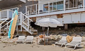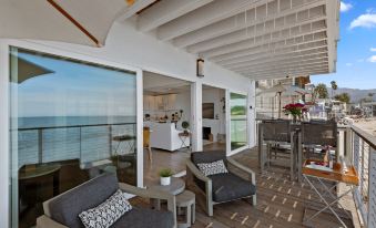 Perched just above the sand on this infamous beach, this chic immaculate single-level flat is the one-bedroom, two-bathroom lower unit of a duplex. With modern personality and a sleek, fresh new feel inside, the blue Pacific Ocean, Channel Islands, and the long stretch of sandy beach outside offer an undeniably dramatic backdrop.
