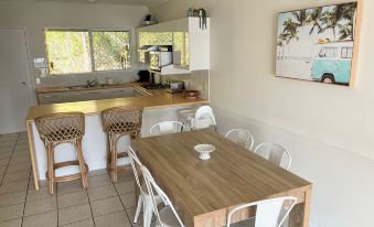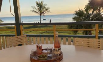 Tangalooma Sands (Villa 47) is a private beachfront villa located at the quieter end of the Tangalooma Island Resort on Moreton Island sleeping up to 6 guests, just over an hours ferry ride from Brisbane. The 3 bedroom, 2 bathroom villa is fully air conditioned with Smart TV and free high-speed WIFI. Downstairs has a split-level layout with separate lounge area and dining/kitchen and a second bathroom with a shower. The lounge area opens onto the main deck with seating to enjoy the most beautiful ocean views and sunsets. Walking down a few stairs takes you directly onto the beach. Upstairs there are 2 bedrooms with a sleep out and the main bathroom. The master bedroom has a king size bed, the second bedroom has 2 x single beds plus a sleep out with a bunk bed located between the bedrooms. The master bedroom opens onto the balcony to further enjoy the ocean views and sunsets. Guests are able to access all the Tangalooma Island Resort restaurants, facilities and activities excluding Dolphin Feeding which is not included with your booking but you are able to watch from the jetty which provides a very good view of the feeding.