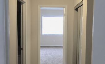 Located in between the two bedrooms upstairs is a shared bathroom, with plenty of vanity space for two. This shower and tub is well-sized and provides all you need for a comfortable experience.