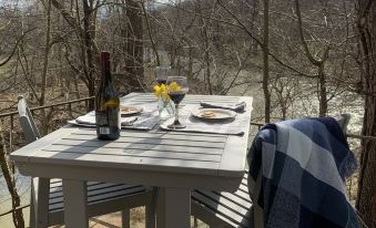 Brand new peaceful cabin located on a secluded working farm. The cabin over looks the beautiful Wakatomika creek which is filled with several types of fish. The farm has free range chickens, horses and cattle. There are also polo games occasionally hosted at the farm’s outdoor arena. There are bald eagle sightings frequently along with many types of hawks, songbirds and woodpeckers. Abundant whitetail deer, turkeys, rabbits and other small mammals are frequent visitors.