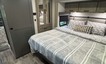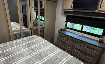 The kitchen was the perfect size and had everything needed to cook a meal was provided. While there wasn’t a dishwasher, it’s understandable for an RV. Honestly, this place gave me RV fever—we’re already considering getting one!