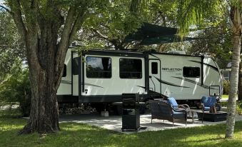 Get away from it all when you stay in our beautiful, brand-new RV in the country, on 10 beautiful acres. Take a nature walk for miles and encounter horses, cows, and chickens. Enjoy the animal views and serenity while sipping wine next to the fire pit and barbecue outside, surrounded by beautiful sunsets and the stars. Visit Sarasota Siesta Key Beach, Anna Marie Island, and Lakewood Ranch. Bradenton Motorsports/Freedom Factory, Hunsader Farms & Fiorelli Winery down the road, and so much more!About pets:Pets allowed: dogs less than 20 lbs per pet (limit 2 pets total).About checkOut:Check out before 11:00 AM.About children:Children allowed: ages 0-17.About checkIn:Check in after 4:00 PM.About smoking:Smoking is not permitted.About minBookingAge:Minimum age to rent: 30.About events:No events allowed.