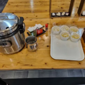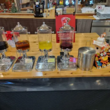 투숙객을 대상으로 음료와 우동을 서비스로 제공합니다.