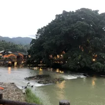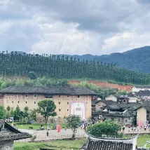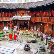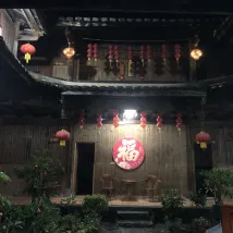 Quán trọ Tulou này còn rất mới, mới mở chưa đầy 3 năm. Trong sân có rất nhiều tác phẩm điêu khắc bằng đá, rất thú vị. Gần Yunshuiyao, vừa bước ra có một con phố ẩm thực. Nó cũng rất gần với Tháp Hoài Nguyên, sau bữa tối bạn có thể đến đó để chụp ảnh cảnh đêm rồi về ngủ hahaha.