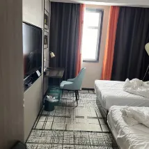 Phòng cách âm kém, tôi cùng con đi thi thì đã hơn ba giờ đêm, có một nhóm du khách lớn tuổi mở cửa gọi to khiến tôi khó ngủ. bãi đậu xe ở xa. Thảm ở hành lang và thang máy rất bẩn. Chỉ có tiền đình ở đó trông đẹp, nhưng trải nghiệm sống ở mức trung bình.