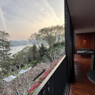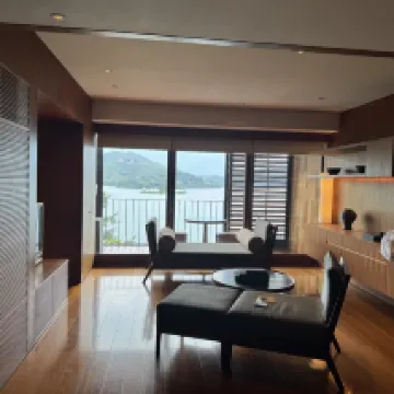 Đây là khách sạn được khuyên dùng nhiều nhất ở Đài Loan vào buổi sáng, làn khói quanh Hồ Nhật Nguyệt và những ngọn núi xanh phía xa thực sự rất đẹp. Điều tuyệt vời hơn nữa là thiết kế ánh sáng và bóng tối của Tháp Hanbi của kiến trúc sư Kerry Hill. đơn giản là tuyệt vời. Nó quá nghệ thuật. Không có gì để nói về dịch vụ, thiết kế, môi trường hay dịch vụ ăn uống. N*** cả khi nó được trang trí trong hai mươi năm, nó vẫn mang đầy cảm giác cao cấp. Nó được bảo trì rất tốt. và trông không hề cũ chút nào. Nó thực sự đã được bỏ ra rất nhiều công sức.