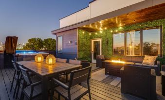 Rooftop: As the sun sets over the picturesque Nashville skyline, make your way up to the exclusive rooftop deck and experience the epitome of luxury living. Unwind in the rooftop hot tub, enveloped by the breathtaking views of downtown. Sip on your favorite cocktail, crafted at the wet bar, and bask in the vibrant energy that surrounds you. This enchanting space sets the perfect ambiance for creating unforgettable memories.