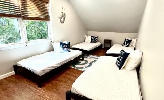 3 bedrooms sleeping 6, central a/c and recently updated. Watch the sunset from the yard and bbq on the grill. Kitchen is well stocked with a spacious table for entertaining. Enjoy 2 separate work spaces, kids loft area with a foosball table, and lake access.