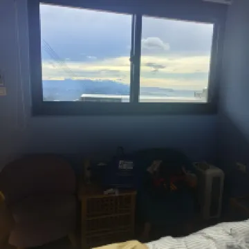 Đó là một căn phòng đẹp. Vào ngày chúng tôi đến, trời mưa nên chúng tôi không thể nhìn thấy gì, nhưng sáng hôm sau, chúng tôi được chào đón bằng quang cảnh ngoạn mục trải dài tới tận biển.