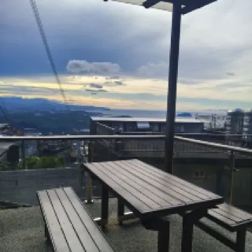 Hotel is right in the middle of the town-just a few minutes walk down the stairs. Parking space available-road is a bit narrow and steep-be careful. Breakfast provided-sandwish and a drink (coffee, soy milk, or tea)