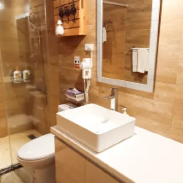 Nhóm chúng tôi gồm 5 người đã đặt 3 phòng, trong đó có một người lớn tuổi. Trên thực tế, những người lớn tuổi đến đó thực sự không muốn đi bộ vì chân họ sẽ bị đau. Nhưng chúng tôi đã nói với họ trước là hãy chuẩn bị tinh thần vì sẽ phải đi bộ lên cầu thang. Đừng mang theo va-li. Ở tại thành phố Đài Bắc, phòng đẹp, bữa sáng có sữa đậu nành và bánh mì trứng.