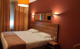 Super hotel. Excellent staff and a coffee machine! My room was spotless and much bigger than I was expecting. Shower, bedding, view from the window could hardly be better. Location is close to restaurants (mostly tourist fare by hey, Nice is a resort I guess) and easy access to and from buses and tram lines. I was in my room less than half an hour after leaving Nice airport, and that despite jumbling up the four digit code enter to the premises.