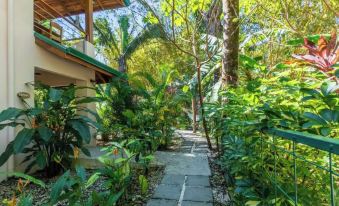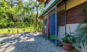 Located in the heart of North Guiones, easy walk to the beach, restaurants, and shops, Casa Nambi offers two one-bedroom apartments (Tierra and Cielo) and a treehouse studio (Arbol) in a tucked-away tropical garden with a pool. Enjoy sounds of howler monkeys, tropical birds, rustling bamboo, and surf just beyond the wildlife reserve. Watch the sunset from nearby Guiones Beach, or stay in and watch the sky change colors from the tree-level sun deck. Casa Nambi, recently remodeled in 2023, offers comfort, efficiency, and up-to-date amenities. The units may be rented individually or together.