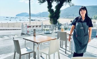 This hotel exceeded my expectations and had not been my first choice. The beach is wonderful for walking, exploring and swimming, with stunning changing seascapes. I was delighted to have room 106, directly facing the magnificent beach, a double bed but no balcony. The pillows were top quality and there were so many of them. The room was very comfortable and the bathroom spacious, everything was spotless and made up daily which I really like. There is a very good guide in the room, the best I have seen. The staff in the hotel, cafe and restaurant work very hard and are helpful and friendly when you see them. The waiters in the cafe downstairs work very long shifts and always made me feel welcome and made great coffee. I never ate in the main restaurant as I avoid over-priced formal seafood dining on the beach front. On my first night, I did try rabas in the cafe which was overcooked and chewy so that deterred me from trying any other cafe food, apart from a breakfast tostada with fresh tomato which was great. I was disappointed some of the nearby restaurants were closed so it was inconvenient to find quality places to dine or order from. I would suggest bringing some snacks if you want to maximise your beach time. The hotel/cafe would benefit from having more snacks and tea/coffee making facilities in the room would make a big difference for relaxing. The hotel also has a nice side terrace which I found relaxing for reading and ample lounging space on the lower level which I did not use. Be prepared for music until midnight from the bar. If I return, I would request a room on a higher floor for more privacy from the terrace and car park below as I would prefer to have the curtains and large windows wide open to take in the incredible views. Wifi was a bit slow but adequate for my needs.