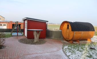From the terraces you have a magnificent view over fields and meadows to the evergreen North Sea dyke.