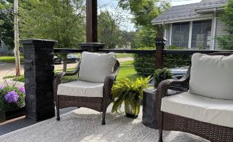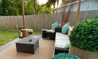 We start putting the patio furniture out closer to May. The backyard holds many, lots of families visiting for game weekends bring their own lawn chairs for extra seating for their friends. Plenty of room on the patio couches, egg chair and even the patio stairs for guest. Weber grill, bbq utensils and lots of spices are available for guest to make great memories. Corn hole, bad mitten and many more out door games as well as 2 cruiser bikes are available for guest