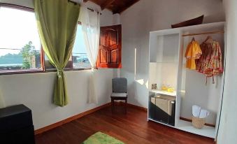 This accommodation consists of a 2x2 m double bed, private bathroom, clothes organizer, air conditioning, refrigerator, minibar, hair dryer, portable cell phone charger, coffee or wine utensils. You can also dress up and take photos with a costume from Tamborito, our typical dance of the region.