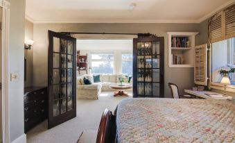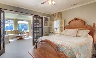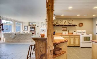 Sweeping French doors into a bedroom, a full kitchen and bar, living and dining room area and a bathroom with shower all on one level makes the cottage easily accessible and livable for short stays or an extended stay.About pets:No pets allowed.About checkOut:Check out before 11:00 AM.About children:Adults only.About checkIn:Check in after 4:00 PM.About smoking:Smoking is not permitted.About minBookingAge:Minimum age to rent: 21.About events:No events allowed.