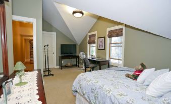 The Bonus room (6th bedroom) is optional and is included booking 12 + adult guests. There is an additional fee for this room and we require a minimum of two adults to occupy this space. We will offer this room under 12 guests with an additional fee if you want the extra bed space. This room is seasonal from April - Oct and not available during the winter months. This space is above the detached garage with no bathroom. but very close walk to the home.
