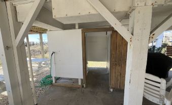 Want to stay at home and not go out to eat? Downstairs is set up with gas and charcoal grills and a great place to enjoy happy hours as meals are prepared. We also have a propane burner and a big pot for shrimp boils. It is also a great place to play games (corn hole) if it's raining.