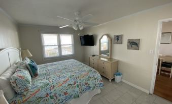 Majestic views of the Atlantic Ocean! Sip on your favorite morning beverage and watch the sunrise. In the winter, you could watch the sunrise and the sunset from the ocean-side deck! Of course, you could take a few steps down the boardwalk to the beach and have solitude during the sunrises and sunsets.