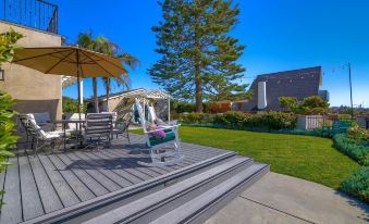 This spacious beach home property features a luxurious main house, a private cabana studio and a separate retreat all for your use and enjoyment. The outdoor patio area is equipped with a pool, hot tub, outdoor shower, wet bar, BBQ and an outdoor fire place, perfect for entertaining or to enjoy with your family. Inside you will find a gourmet kitchen with new chef quality appliances and beautiful décor throughout. The house can sleep most any group with two cal king beds, three queen beds and one queen sofa sleeper. The garage area allows parking for up to 2 vehicles, but for guests without a vehicle, you will find that it is an easy walk to many local hot-spots, restaurants and beaches.