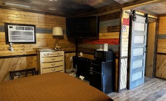 Located on beautiful Horseshoe Lake, these cabins are the perfect getaway. Sit on the enclosed shared front porch and enjoy a cup of coffee as you watch the wildlife on the lake. Horseshoe Bar & Grill is located on the other side of the lake where you can grab some great food and drinks. Only a few miles away. This is ONE building, with TWO SEPARATE ROOMS/CABINS. The Labrador Room is a one queen bed cabin (sleeps 2) while the Mallard Room has two full beds (sleeps 4).About pets:No pets allowed.About checkOut:Check out before 11:00 AM.About children:Children allowed: ages 0-17.About customRules:You will be responsible for any missing property or damage to the rental property caused by you or your party during your stay..No smoking inside the cabin or the porch area,If using the outdoor firepit, fire must be fully extinguished before leaving the property.About checkIn:Check in after 3:00 PM.About smoking:Smoking is not permitted.About minBookingAge:Minimum age to rent: 21.About events:No events allowed.