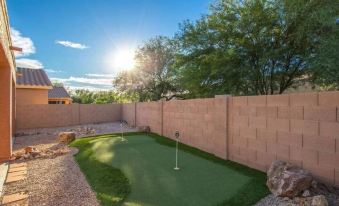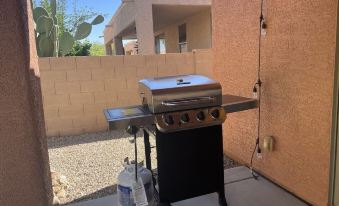 We stayed for six weeks in Jan/Feb 2024, and the time flew quickly. The host was responsive, and the home was clean, comfy, and modern. Loved the quiet, clean subdivision. The hot tub in the backyard felt great after a long walk or a round of excellent golf at the nearby El Conquistador courses (3 of them!). The fully walled backyard was small but worked perfectly for our older doggie who also loved her many walks to the small park a block away. Bring your hiking shoes for some longer trails running past the Honeywell plant to the south, along a causeway to the north, or up into the mountains to the east. Two minutes west by car takes you to civilization, with dozens of stores and restaurants within easy access. Grandma Tony's pizza! I'd give the house 9.5 stars out of 10, leaving off that last half-star merely because the neighborhood doesn't have any walking trails leading to the restaurants on the other side of the busy (Oracle) highway. Also, midnight walks aren't recommended due to the battles between the coyotes and javelinas - which, on the positive side, means you'll see lots of wildlife. Another huge plus is the access to downtown Tucson. I attended a conference near UA while in town, and the half-hour drive couldn't have been easier. Turn left on Oracle, drive, park. Golf courses on the west and south sides of town (Fred Enke, Starr Pass, and Sewailo) were awesome! All are within an hour's drive. We loved Tucson in January but would probably avoid the summer.