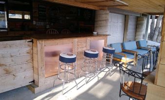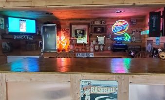 Property was fantastic. Great fishing off the dock. Caught enough fish to have a fish fry our last evening. Lots of space, clean, and comfortable. Beautiful decks facing the lake. Outside bar on ground level facing lake. Spent our evenings at the bar, which had a fireplace, watching day turn into night. The owner, Rusty lives next door and was very helpful, friendly, and very accomodating. We had an absolutr wonderful time! We will be coming back next year.
