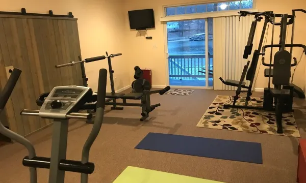 The house functions as a four bedroom as the 400 square foot gym and 300 square foot game room are designed for private sleeping as well. The game room has two twin beds perfect for children and/or young adults and a queen bed. The gym has a queen bed. There is 1 other bedroom with a queen bed. The living area has a large sectional couch (with a pullout bed) that can also sleep additional people, if needed. The master and second bedroom are both on the second floor. The master has an en suite bathroom as depicted in the photos. The second bedroom has a full bathroom immediately adjacent (includes tub and shower). The first floor bathroom (includes tub and shower) has a direct entry to the gym which has a queen-sized bed. The gym can be shut off from the rest of the house by a custom-built barn door, In other words, three bedrooms each have their own full bathroom which easily allows 3 couples to share the house while maintaining their privacy (The gym and master both have televisions and sliding doors to their respective decks.)
