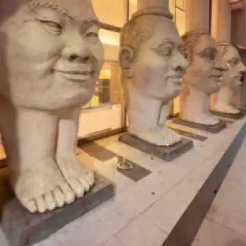 Stayed two nights here. Iconic facade with four giant heads; like a landmark where I can see passersby photographing the entrance.