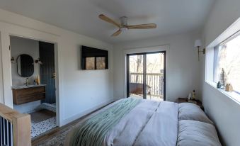 As you walk inside your met with the inviting living room that then leads to the kitchen and downstairs bathroom. Upstairs is the master bedroom equipped with a king sized bed, TV, and an upstairs balcony angled correctly to catch the evening sunsets. There is also a luxury bathroom upstairs where every detail is a delight! Freshen up with the rain shower or unwind with a bubble bath. I fell in love with this home and property at first sight and I know that you will too!