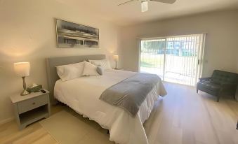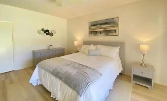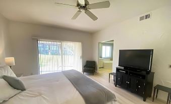 Sunny Palm Desert is waiting for you at this marvelous, NEWLY RENOVATED 3-bedroom condo in the Desert Falls Country Club Villas. Step inside to find a master king bed, 1 queen bed, and 1 sofa bed, perfect for a comfortable, quaint stay. This is a ground level unit, no stairs necessary so we are ADA accessible. Enjoy amenities like AC, WiFi, cable tv and 2 pools in the backyard along with pickle ball and tennis courts available next to the fitness center. Be sure to check out the closets where you can find floaters x the pool and 2 bikes in the garage to ride within the complex for you to enjoy during your stay! With 3 bathrooms, including a washer and dryer, you'll feel right at home. Our place is equipped for both long or short stays to make your journey one to remember.