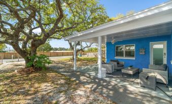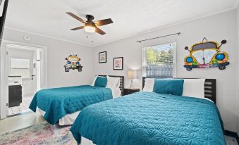 This is the cutest house located in the middle of everything. Go west and you hit Pier Park and go east and you have access to Thomas Drive, downtown, and less than a mile from David's Sno-Balls, the best po boys and beignets on the beach. The house has everything you would need to cook your meals and even though we brought kitchen stuff, we really did not need to as everything you might need was provided. There are tv's in each room and all streaming apps are available. The house is located across from a go cart place, but we really did not hear them from inside the house. We could walk to Funland and to dinner at Runaway Island. The private beach was easy to access and it is just so beautiful. The water was gorgeous for our visit and we really enjoyed relaxing in the ocean. The bedrooms were large and there is a lot of closet space. Bathrooms are spacious and washer/dryer worked fine for us. We wondered if other visitors "moved in" like we did as we filled up all the pantry and closet space!! This was truly the loveliest of vacations and we very much appreciate all the hospitality that was provided. I would rent this house again in a heartbeat and we had no issues during our visit.