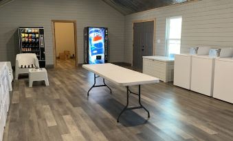 Great curb appeal! We were booked for about 6 nights as we were waiting to close on our new house. Upon arrival there were lots of wonderful things like the curb appeal, first impression, a basket for dogs, etc... The longer we stayed things started popping up. There were black things on the bedding, we figured out it was MOLD coming out of the split unit (I have photos, I have photos for everything), no sink or cabinet in bathroom to put out your toiletries... brushing your teeth in your kitchen sink, the microwave looked like no-one had ever cleaned it before. The cabin had this ultra fragrant smell in it that my husband turned out to be very allergic to, that I had to find allergy medicine to help him feel comfortable. The listing says no smoking, but there is a can w/ sand outside with cigar butts in it when we arrived. The cabin is listed at 500 sqft, but is less than 400 sqft. You start to run out of room very quickly when you are staying somewhere for a longer stay. Property is not waterfront, it has a manmade pond with a fountain in it that has ducks, I'm not sure where the river is either. Overall, very cute property, laundry area is clean and was available when I needed it, also is very close proximity to where we needed to be.
