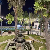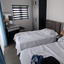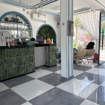 Một nơi khác thường. Một phòng Deluxe, nhưng có một NHƯNG to đùng. Các phòng không được cách âm, vòi sen được kết nối với toàn bộ phòng tắm, vì vậy khi bạn rửa, cả phòng bị ngập trong nước. Công tắc được giấu sau lỗ thoát nước. Vòi nước bị hỏng và chỉ giữ được một chút. Nước trong phòng được đựng trong chai thủy tinh, vì vậy chúng tôi thậm chí không thèm uống. Không có trà trong phòng, vì vậy chúng tôi phải mua cà phê. Tuy nhiên, có bồn rửa và bếp nấu, cũng như dao kéo. Điều hòa không thể làm mát bình chứa vào ban ngày, tất cả chỉ vì tường trống. Bản thân căn phòng được trang bị kém, hãy xem ảnh. Họ có thể lắp đặt một tủ lạnh mini trong tủ bếp và làm một phòng tắm đầy đủ tiện nghi. Biển bẩn, rác ở khắp mọi nơi. Khu vực xung quanh khách sạn, cũng như chính khách sạn, đều sạch sẽ, có tầm nhìn đẹp và sân vườn. Hồ bơi nhỏ. Bữa sáng và thực đơn được bao gồm, nhưng đồ uống thì không!
