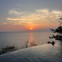 Có một hồ bơi hoàng hôn và quán bar trên núi nơi bạn có thể ngắm hoàng hôn trên đảo Phi Phi.