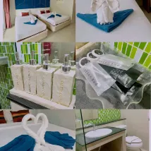 Cửa có khe hở, nhiều bọ và không cách âm được gì. Nó to hơn nhiều so với tôi mong đợi nên tôi khó ngủ. Tôi chỉ từng ở những khách sạn có cung cấp bàn chải đánh răng và tôi hoàn toàn cho rằng họ có chúng, vì vậy vấn đề là tôi không có bàn chải đánh răng. Họ mang hành lý của chúng tôi đến cảng khi chúng tôi đăng ký, nhưng họ không thể mang hành lý của chúng tôi khi chúng tôi trả phòng. Thật tuyệt khi được ở rất gần bãi biển.