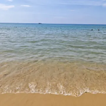Cát mịn, cả trong nước và trên bãi biển, và không có đá.