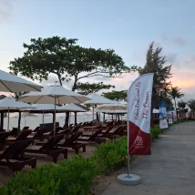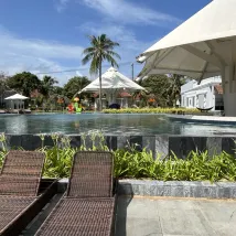 Khách sạn nằm cạnh bãi biển, một bãi biển tuyệt đẹp, tháng 7 sóng lớn không thể tắm, nhưng ngồi trên bãi biển hít thở làn gió biển mát rượi và chơi đùa trong hồ bơi cạnh bãi biển thật thư giãn.