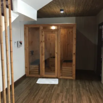 Phòng là biệt thự hai tầng, tầng dưới là phòng khách cộng thêm phòng tắm có bồn tắm, và thậm chí còn có cả phòng xông hơi khô nữa. Trời mưa thì đi đâu cũng được, có thể xông hơi khô trong phòng 🤣🤣🤣 Tầng hai có hai phòng cộng thêm phòng tắm, phòng chính là một giường đôi, có sân hiên, phòng khách là hai phòng đơn.