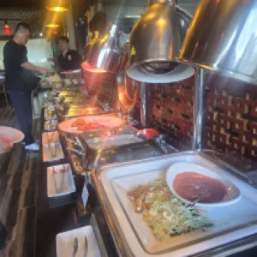 Bữa sáng được phục vụ theo hình thức buffet, tuy không có nhiều kiểu, nhưng bạn có thể ăn uống thoải mái, và mỗi ngày một kiểu khác nhau, điều này rất đáng khen ngợi 👍👍👍