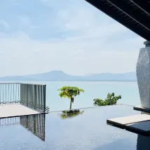 Khách sạn nằm trên một ngọn núi được bao quanh bởi biển ba mặt, có tầm nhìn rộng và có thể nhìn thấy bầu trời đầy sao tuyệt đẹp vào ban đêm. Phong cách thiết kế kiến trúc cao cấp và đầy đủ chi tiết; dịch vụ chu đáo, nhân viên phục vụ sẽ ghi nhớ sở thích về phòng và bữa ăn của bạn; Tôi đã trải nghiệm cả ba bữa ăn, bữa sáng kiểu Ý tinh tế và đẹp mắt, còn đồ ăn Thái thì có. hương vị và giá cả độc đáo; còn có múa lân trong các buổi biểu diễn Lễ hội mùa xuân, phong bao lì xì màu đỏ và những bất ngờ nhỏ khác. Xung quanh khách sạn không có doanh nghiệp nào và cần phải giao tiếp bằng tiếng Anh. Nếu bạn có kỹ năng tiếng Anh và muốn tận hưởng kỳ nghỉ của mình, tránh xa đám đông thì đây là một lựa chọn tốt.