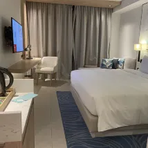 Các phòng không lớn, nhưng nó là quá đủ cho hai chúng tôi. Chiếc giường không quá mềm hay quá cứng - vừa phải. :) Khăn trải giường còn mới và sạch sẽ, khăn tắm có chất lượng tốt. Trong phòng có sofa, tivi, bàn, tủ lạnh, bàn ủi, bàn ủi + quạt máy. Hệ thống AC mới và hoạt động tốt. Vòi hoa sen có áp lực tốt, nước nóng và lạnh. Tuy nhiên, thật tuyệt nếu có dầu gội / dầu xả và sữa tắm chất lượng tốt hơn (chúng tôi đã mua của riêng mình). Họ đang giữ phòng sạch sẽ và gọn gàng (dịch vụ phòng hàng ngày). Điều đáng nói là Wi-fi thực sự tốt ở mọi nơi trong khách sạn.